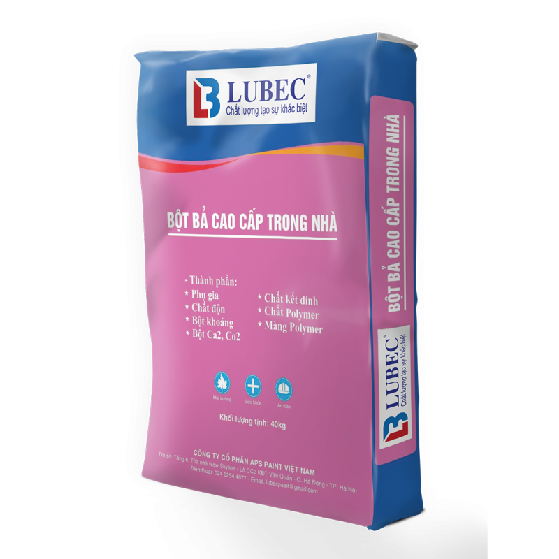 Bột bả cao cấp LUBEC là một sản phẩm trộn sẵn gốc cement chuyên dùng làm lớp phủ hoàn thiện cuối cùng cho bề mặt bê tông hay vữa trát trong nhà trước khi sơn nhằm tạo bề mặt phẳng mịn màng.